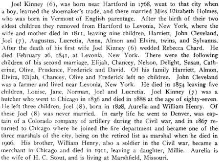 -"Portrait and Biographical Album of Lenawee County, Michigan" entry for Sylvanus Kinney