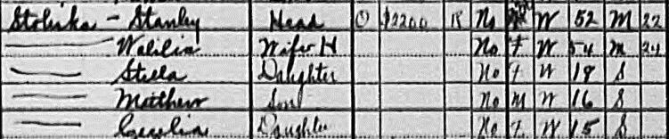 Stanley and Walilia are listed as husband and wife. Stanley at 52 years old and wife at 54. Stanley is listed as a chipper in a Mill. They were both born in Poland. They own their house worth $2200, and they own a radio set.