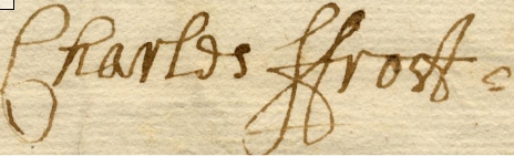 -His personal family bible still exists in the family today. The first entry is made by Charles Frost identifying himself as he owner "Carolus Gelu Ejus Liber 1693", and the second is his widow "Mary Frost her bible 1700"